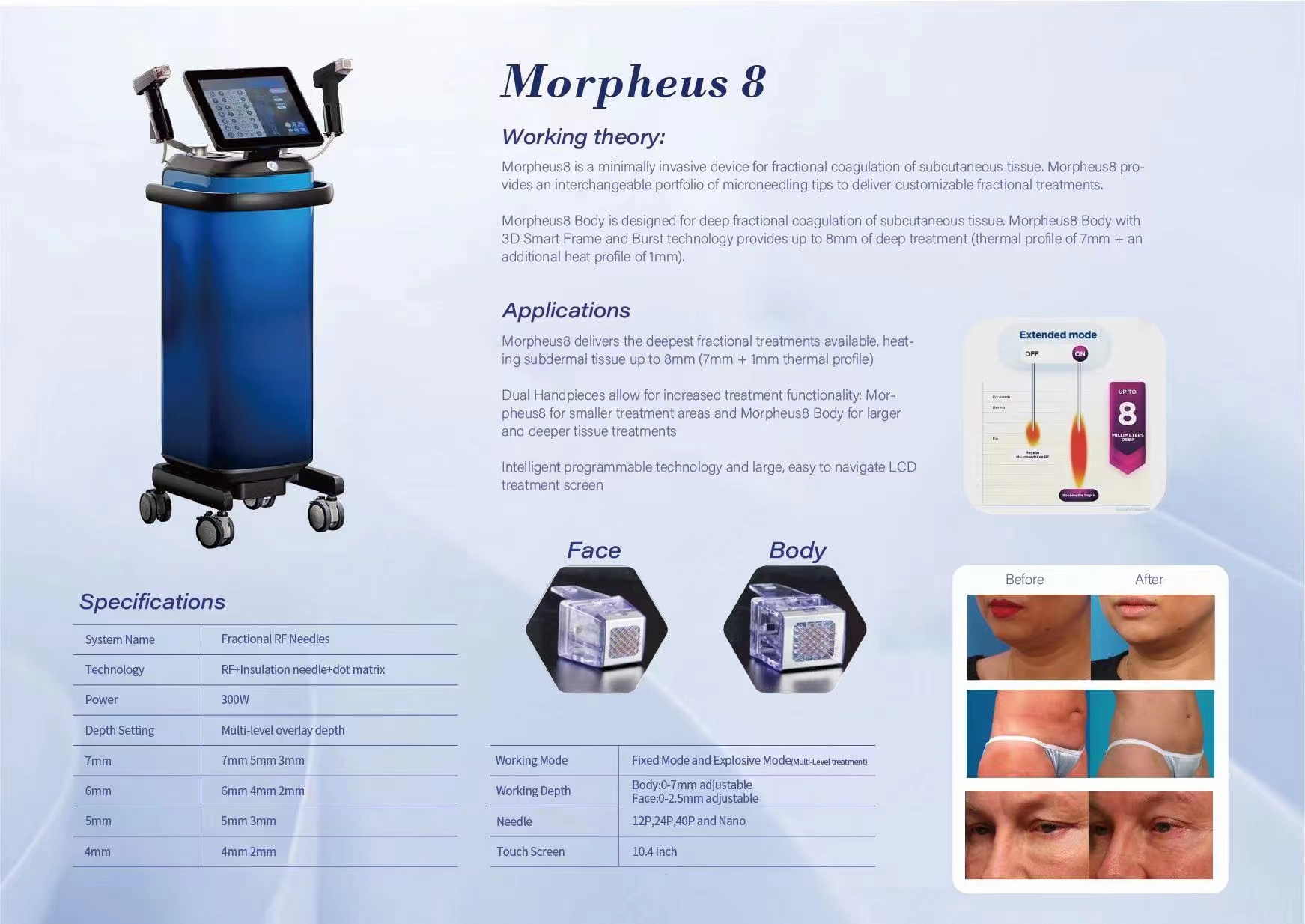 5. **Versatility:** It can be used on various areas of the face and body, addressing concerns like facial aging, skin texture irregularities, and body contouring.