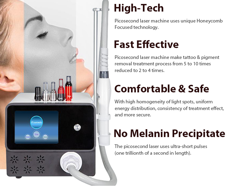 When the pico laser light is being absorbed by the pigments, the light will vibrate, fragments the particles into really thin “dust” and breaks up melanin and pigment particles in “picosecond” pulses.